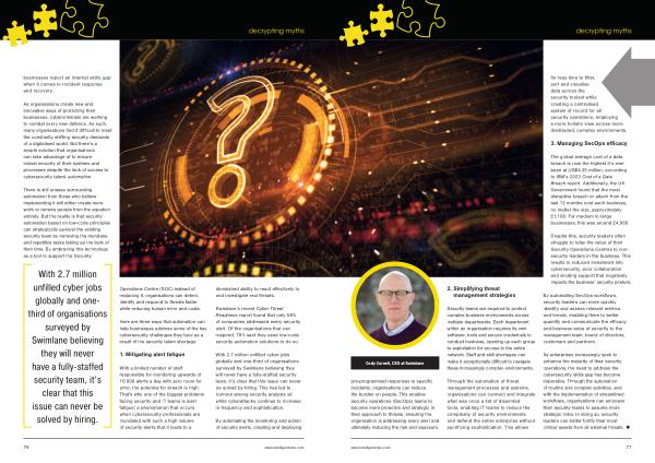 As enterprises increasingly seek to enhance the maturity of their security operations , the need to address the cybersecurity skills gap has become imperative . Through the automation of routine and complex activities , and with the implementation of streamlined workflows , organisations can empower their security teams to assume more strategic roles . In doing so , security leaders can better fortify their most critical assets from all external threats . u www . intelligentciso . com