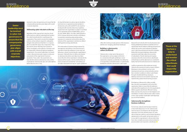 BUSINESS surveillance reflect the evolving security posture of the business and the ever-changing cyberthreat landscape .