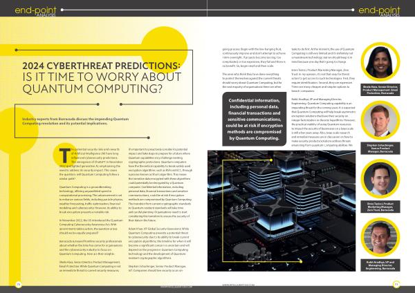 Rohit Aradhya , VP and Managing Director , Engineering : Quantum Computing capability is an impending threat for the coming years . It is expected that Quantum Computing will help break asymmetric encryption solutions that base their security on integer factorization or discrete logarithms . However , the practical viability of using Quantum resources to impact the security of businesses on a large scale is still a few years away . Also , large-scale research and remedial measures are in discussion on how to make security products / solutions address threats emanating from Quantum Computing abilities . We