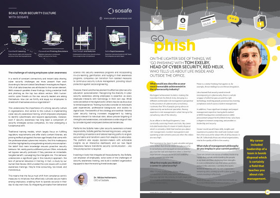 ON THE LIGHTER SIDE OF THINGS , WE ‘ GO PHISHING ’ WITH TOM EXELBY , HEAD OF CYBER SECURITY , RED HELIX , WHO TELLS US ABOUT LIFE INSIDE AND OUTSIDE THE OFFICE .