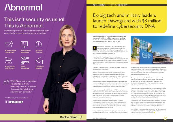 Dawnguard aims to embed security directly into a system’ s architecture from day zero to day 10,000. The company is building various AI and ML-driven engines that integrate across the entire IT landscape to spot issues in the design phase, adapt to evolving environments and make security native.