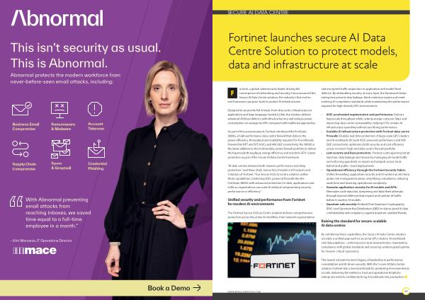 The Fortinet Secure AI Data Centre solution delivers comprehensive protection across the entire AI workflow, from network segmentation and encrypted traffic inspection to application and model-level defence. By embedding security at every layer, the framework helps enterprises prevent data leakage, block malicious inputs and meet evolving AI compliance standards while maintaining the performance required for high-density GPU environments.