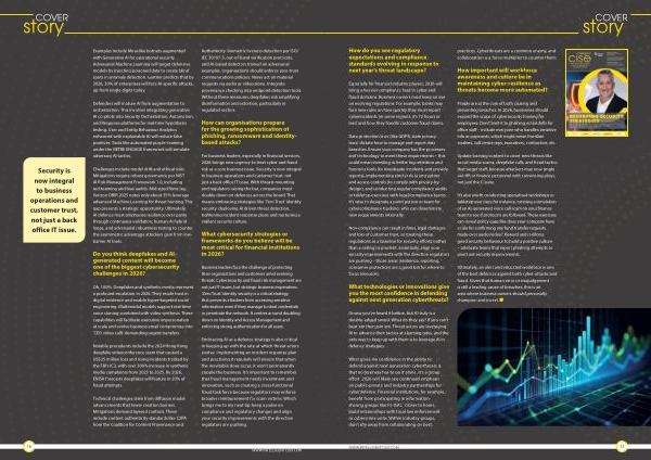 What gives me confidence in the ability to defend against next generation cyberthreats is that no business has to go it alone, it’ s a group effort. 2026 will likely see continued emphasis on public-private and industry partnerships for cyberdefence. Financial institutions, for example, benefit from participating in informationsharing groups like FS-ISAC. Closer to home, build relationships with local law enforcement or cybercrime units. Within industry groups, don’ t shy away from collaborating on best
