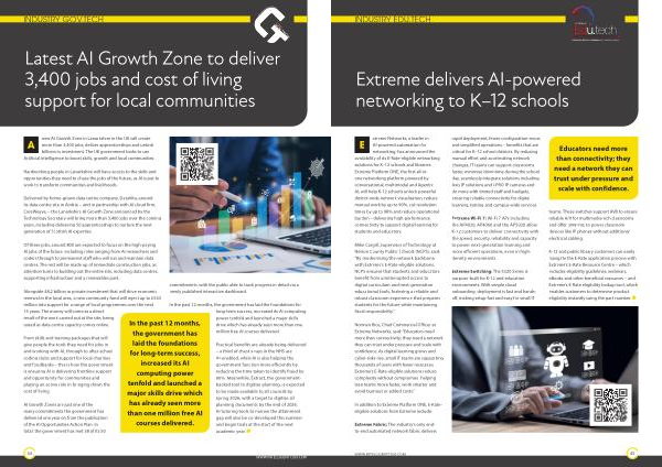 AI-powered automation for networking, has announced the availability of its E-Rate-eligible networking solutions for K – 12 schools and libraries. Extreme Platform ONE, the first all-inone networking platform powered by conversational, multimodal and Agentic AI, will help K-12 schools unlock powerful district-wide network visualisation, reduce manual work by up to 90 %, cut resolution times by up to 98 % and reduce operational burden – delivering high-performance connectivity to support digital learning for students and educators.